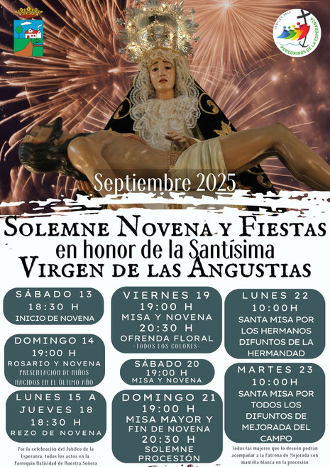 La Santísima Virgen de las Angustias es la Patrona de Mejorada del Campo. Desde tiempos remotos, muchos mejoreños han orado ante su imagen, pidiendo por sus familias y por ellos, mostrando gratitud por su maternal protección y sintiendo el suave impulso de su mano que los ha llevado a Cristo.