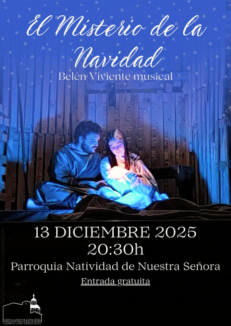 17.00 h: Inicio de pases al Belén viviente en el patio de la casa parroquial, hasta final de espera (22.30 h aprox)